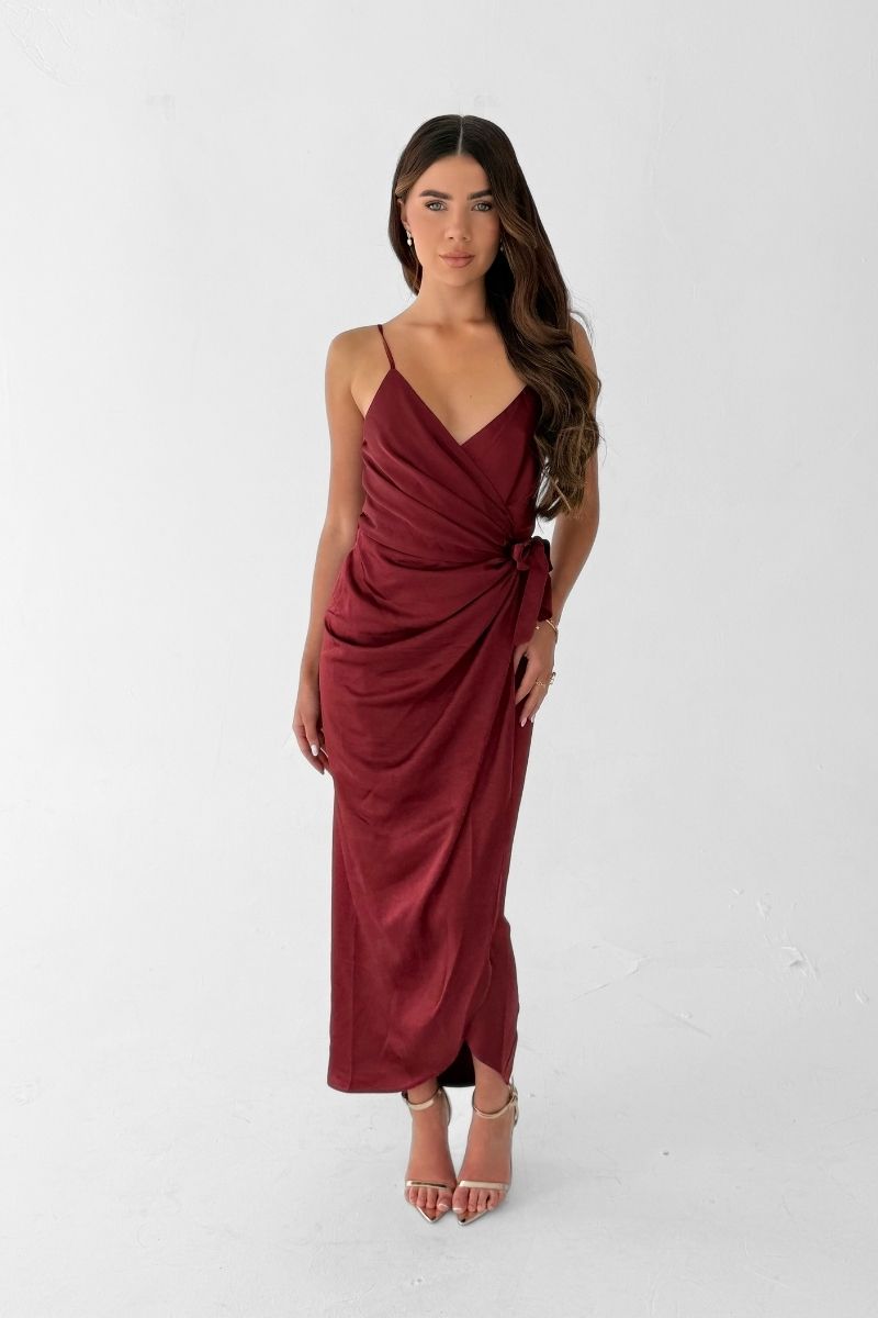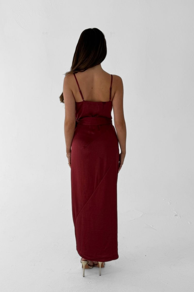 Rosa Tie Side Satin Cami Wrap Dress - Wine